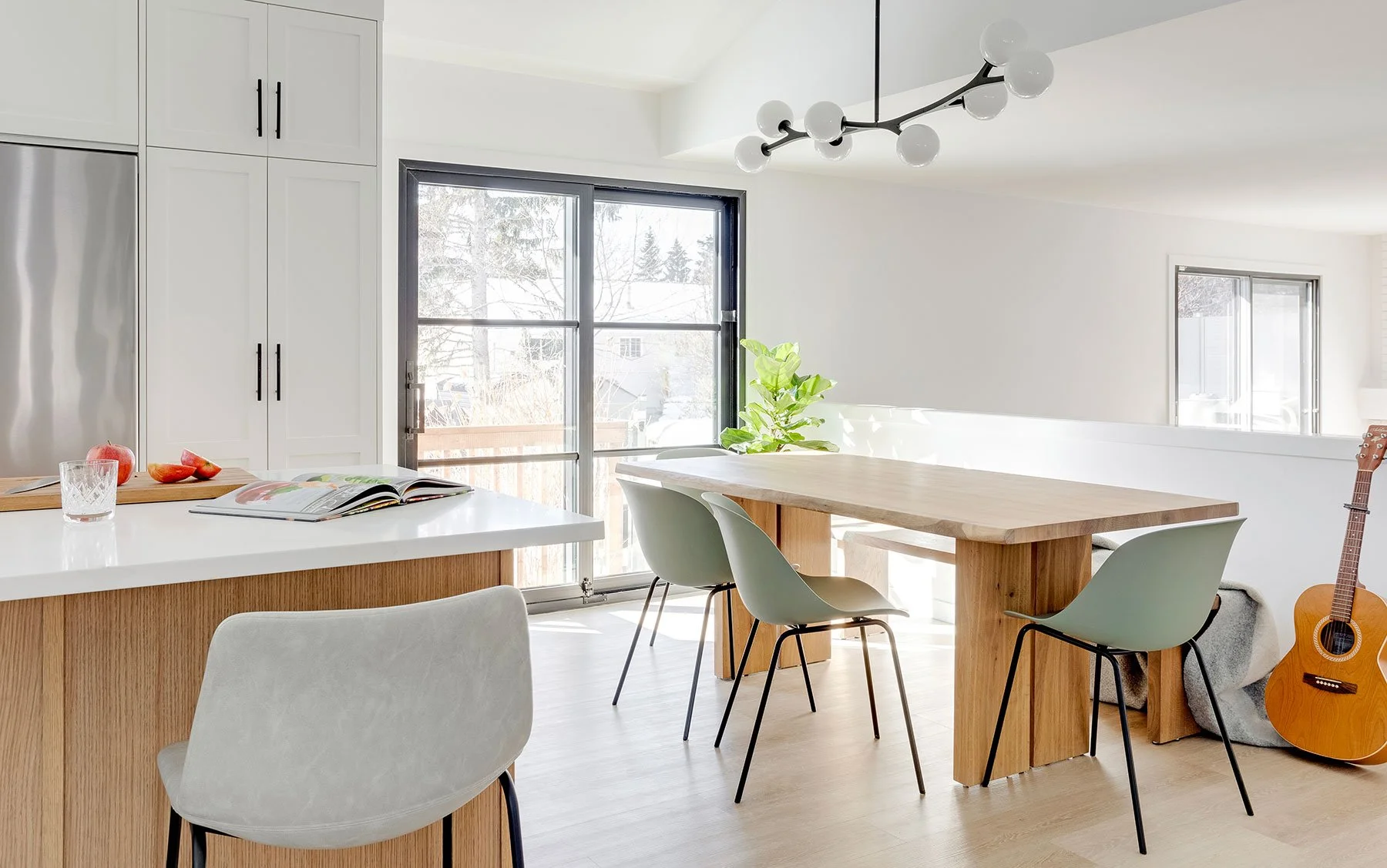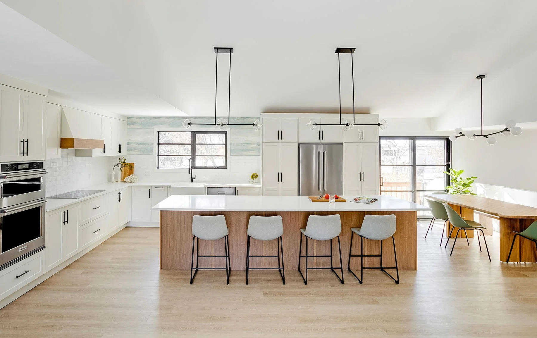 In this project, our homeowners had just purchased a wonderful new home in the beautiful Varsity area, and wanted a refresh. We were brought in to remodel the main floor, along with primary bedroom and ensuite bathroom. They wanted a fresh and airy sensibility while still ensuring the home had plenty of touches that reflected some joy and vibrancy. We demolished the existing kitchen and dining areas to open up the layout, vaulted the ceiling and added additional patio doors. The ensuite bathroom was the perfect blend of calm, soothing yet still fluid and interesting.